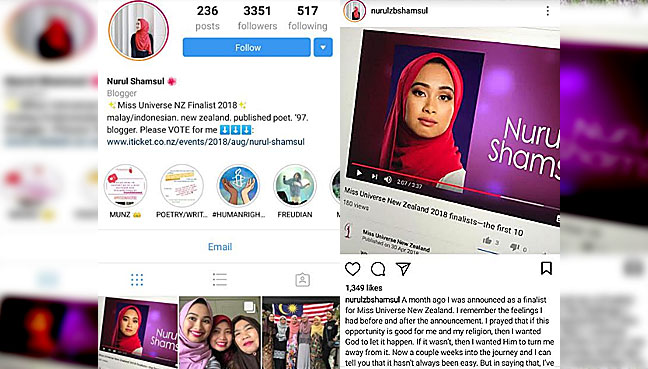 Bertudung dan beragama Islam tidak menghalang wanita muda ini daripada disenarai dalam pertandingan ratu cantik mewakili Ratu Universe New Zealand 2018.